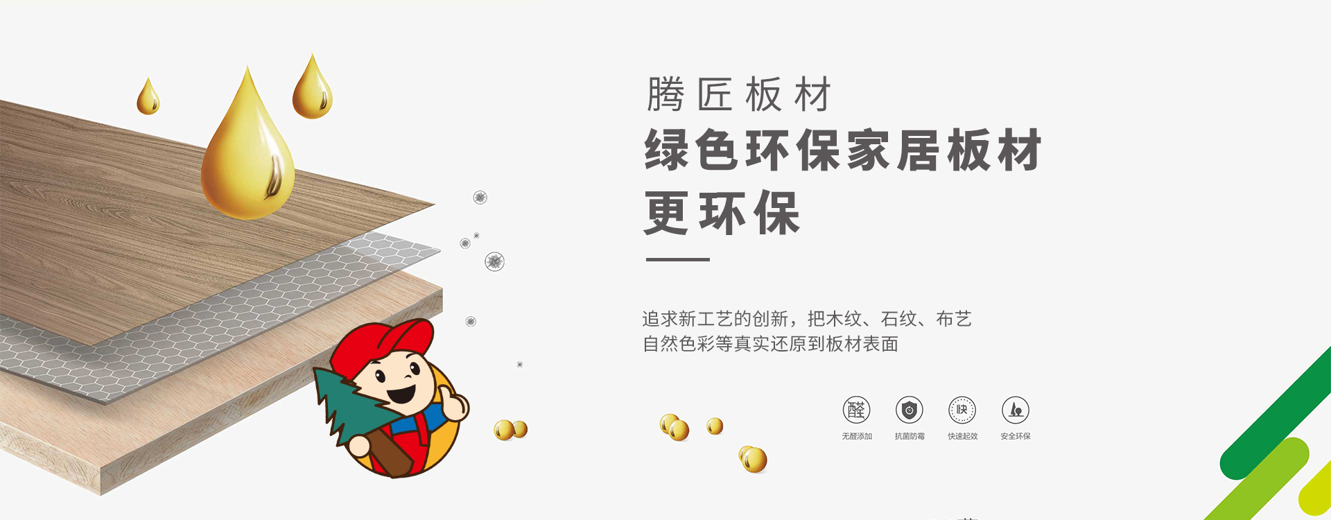 腾匠板材成立于2018年,是一家集研发、生产、销售绿色环保家居板材、三聚氰胺饰面板及家居配套材料的 综合型企业。